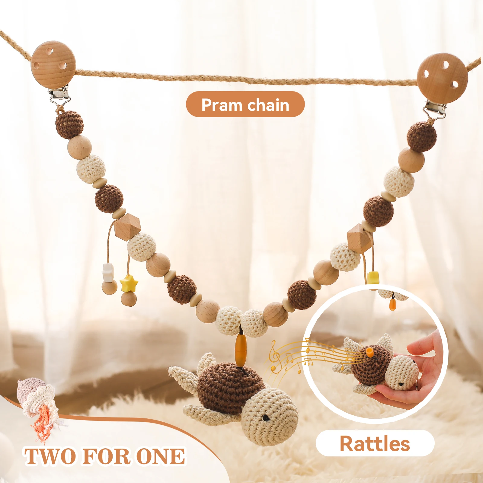 Baby Rattle Toys 0-12 Months Newborn Crochet Rattle Stroller Mobile Toys Wooden Clips Pendant Toys for Newborn Baby Animal Toys